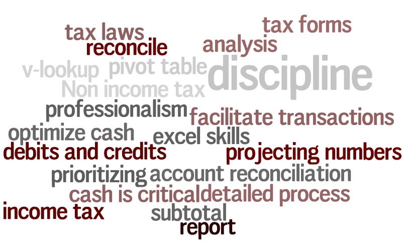 Her ability to work well with others enabled a cooperative environment among the members of her department. This translated into efficient work progress and accurate filings of tax returns.