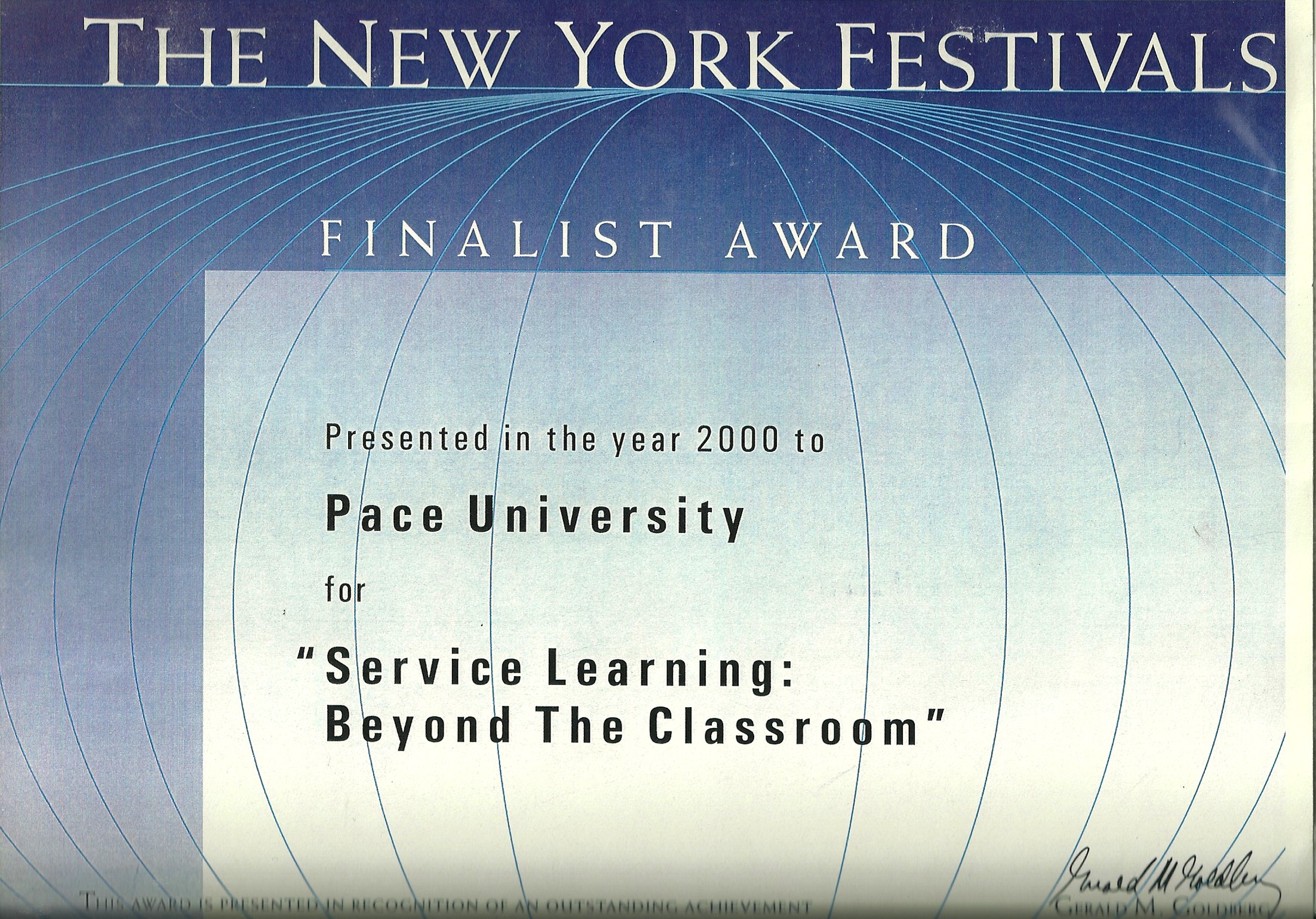 - Finalist, NY Festivals, 2000, Service Learning: Beyond the Classroom video, Executive Producer