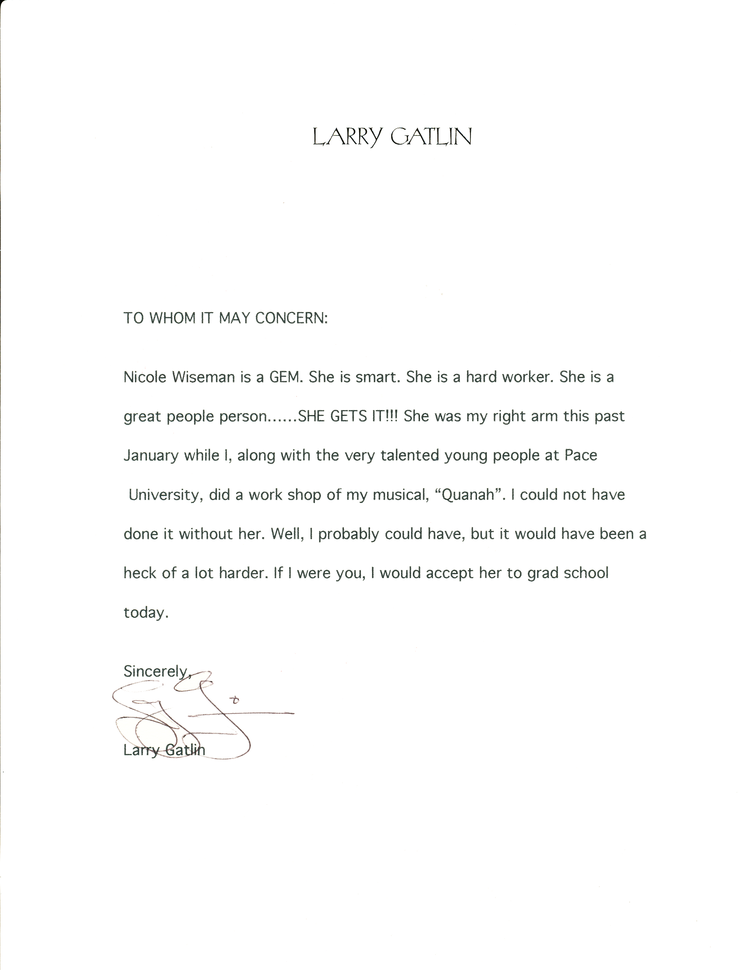 Download Larry Gatlin [1.3MB]}Grammy Award winner Larry Gatlin's letter of recommendation for NIcole Wiseman -