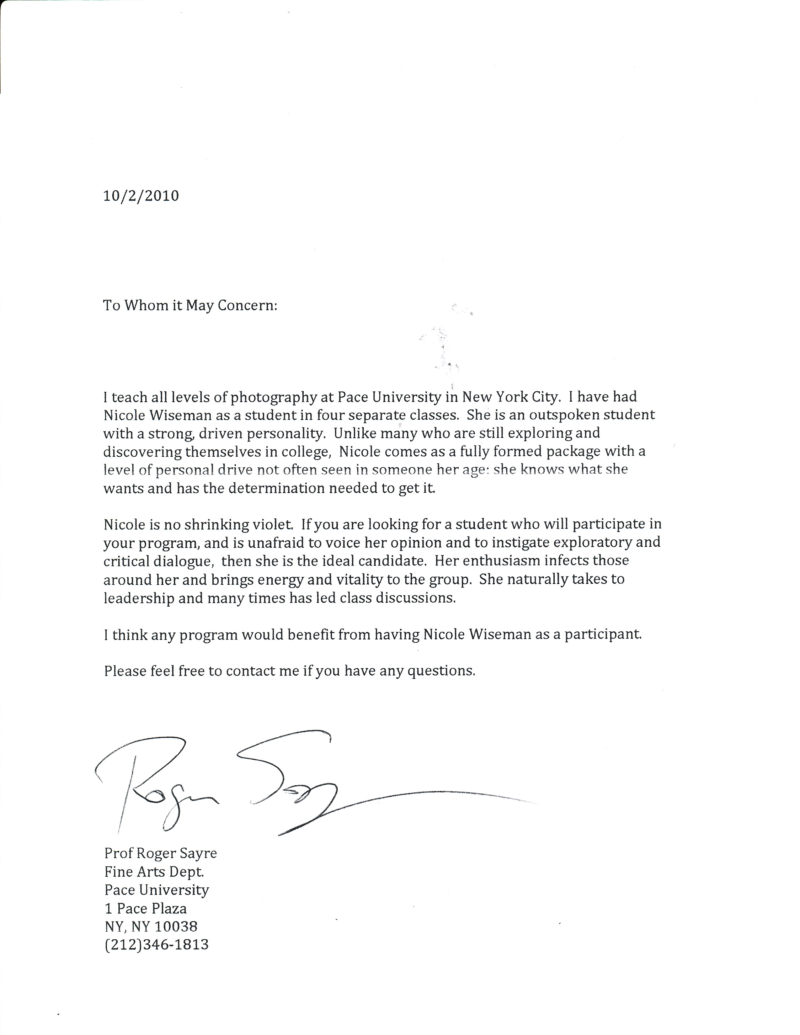 Download Roger Sayre [785.7KB]}Letter of recommendation from photography professor at Pace University
